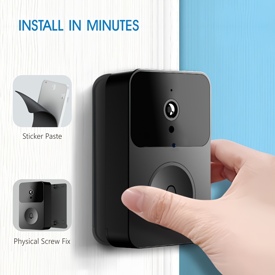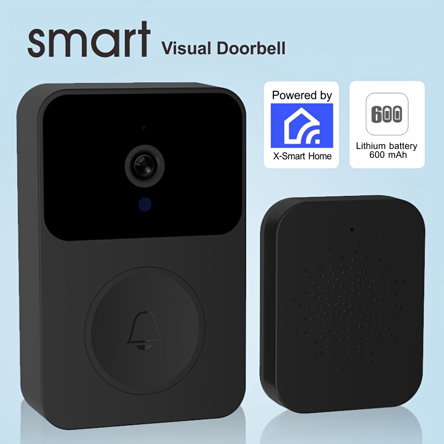 1pc Smart Visual Doorbell with Camera, 480p HD Video, App Control, Built-in Speaker, Bi-Directional Voice Intercom, USB Charging, 600mAh Lithium Battery, Wi-Fi Enabled, Infrared Night Vision, 2.4G WIFI, Non-Waterproof, for Smartphones/Tablets – Black