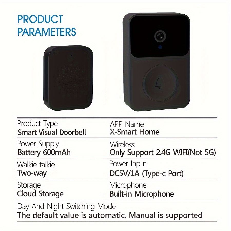 Be the first to review “1pc Smart Visual Doorbell with Camera, 480p HD Video, App Control, Built-in Speaker, Bi-Directional Voice Intercom, USB Charging, 600mAh Lithium Battery, Wi-Fi Enabled, Infrared Night Vision, 2.4G WIFI, Non-Waterproof, for Smartphones/Tablets – Black” Cancel reply