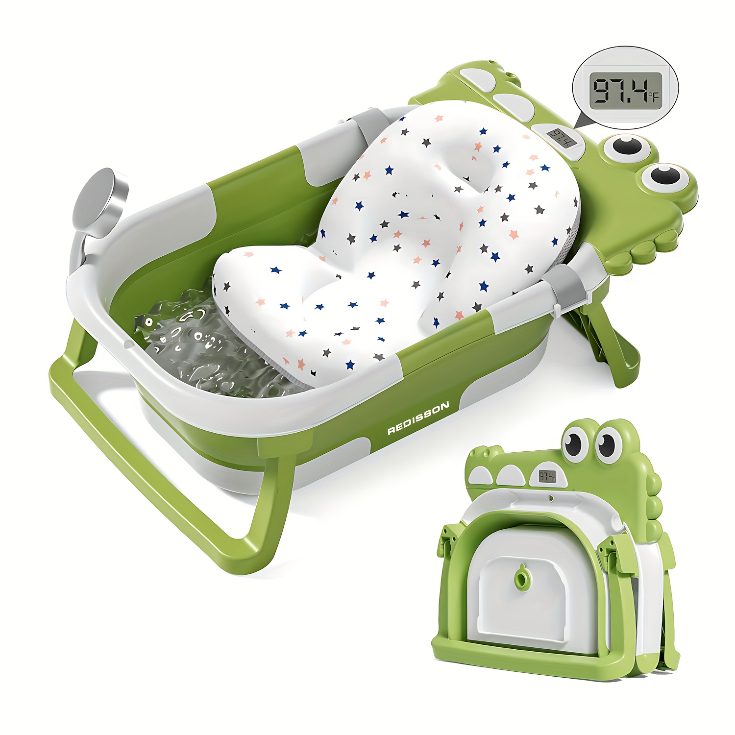 Collapsible Baby Bathtub with Real-Time Temperature Monitor & Floating Cushion – Portable Bath Tub with Digital thermometer, Non-Slip Surface, Fast-Cooling Drainage System – Foldable Travel Baby Bathtub for Newborns, Infants, Toddlers 0-36 Months – Ideal Gift for Parents, Sturdy Stability Legs