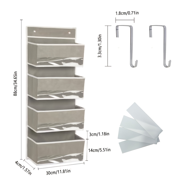 Door Storage Box, 3/4/5 Layer Hanging Door Storage Box, with 3/4/5 Large Capacity Pockets, Anti-Tilt 19.96 KG Load Capacity Rear Door Storage Box, Suitable for Bedroom, Bathroom, Refrigerator, Room Storage and Collection