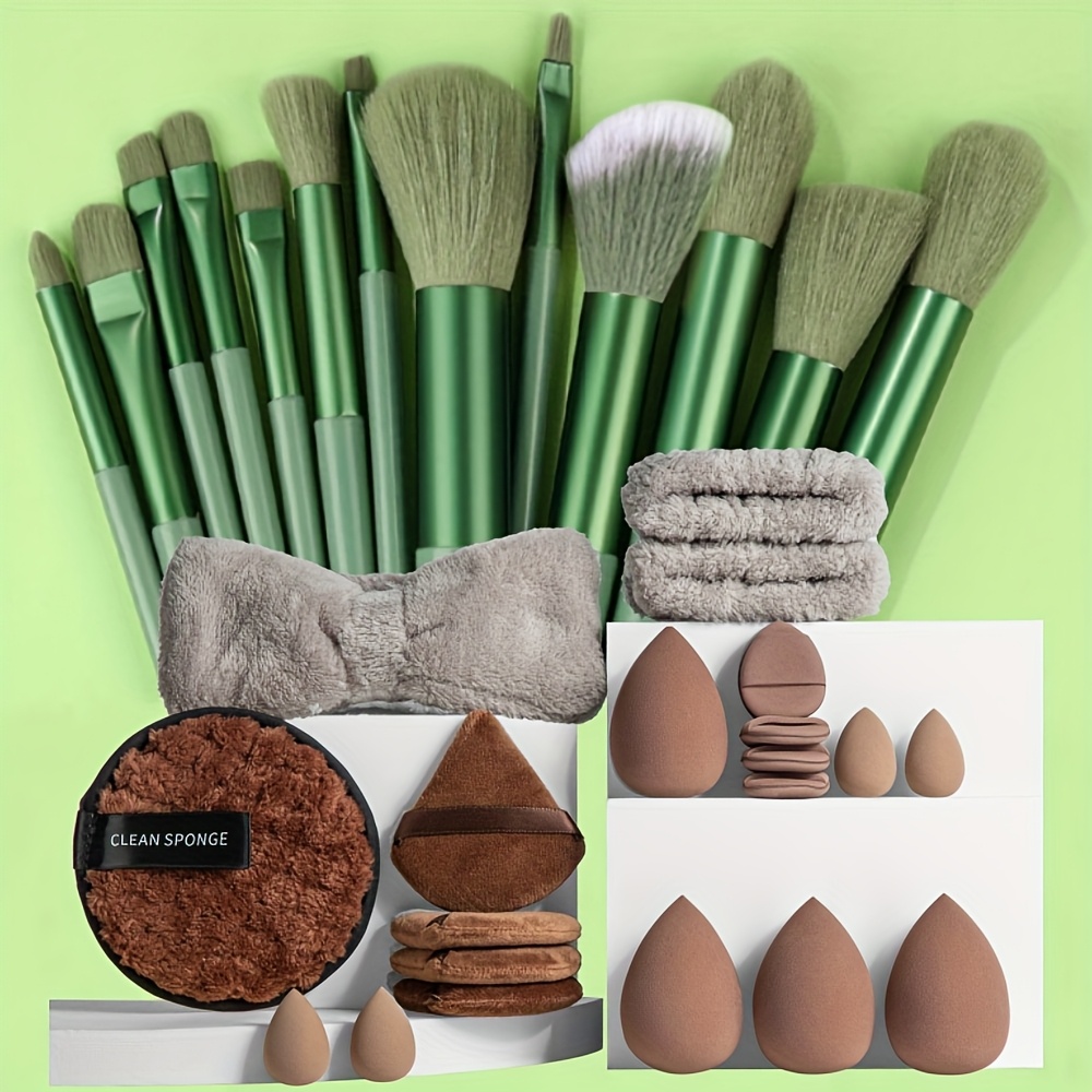[Professional Makeup Tools] 33pcs/13pcs/8pcs Professional Makeup Brush & Tool Set | 13/8 Makeup Brushes + 1 Headband + 2 Wristbands + 1 Makeup Remover Puff + 4 Triangular Velour Puffs + 4 Finger Puffs + 4 Large Beauty Sponges + 4 Small Beauty Sponges